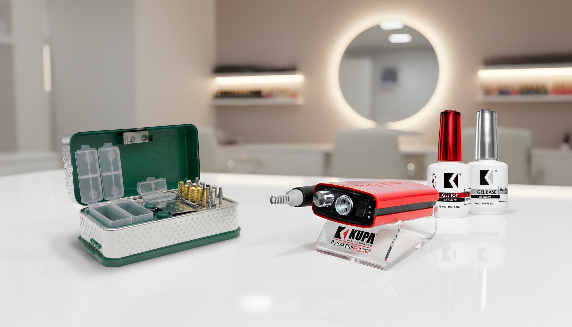 Our all-in-one system cleans, disinfects, organizes, and stores your nail bits. It delivers a more hygienic, organized, and efficient way to protect your bits and promote a safer salon experience for every nail technician and client.